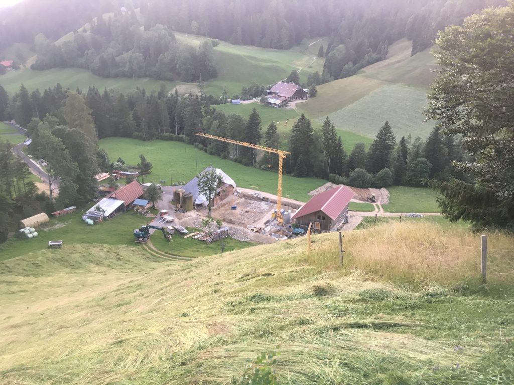 Nur noch eine Woche Zeit den Aushub zu machen, aber zuerst noch heuen. Obwohl der erste Schnitt ordentlich gewaschen wird, haben wir grosses Glück. Der Grösste Teil kann direkt auf dem Feld gepresst und auf der Bühne in der Halle bis zum Winter gelagert werden. Die Hitze ist mörderisch…